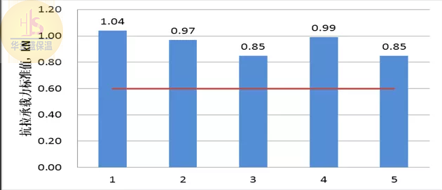對于巖棉板外保溫雖然粘結(jié)強(qiáng)度不作為主要安全度核算,但良好的拉伸粘結(jié)強(qiáng)度可以提供更多的安全保障,因此在耐候試驗后巖棉板的拉伸粘結(jié)強(qiáng)度≥7.5kPa,取值也是國標(biāo)中的最低限。