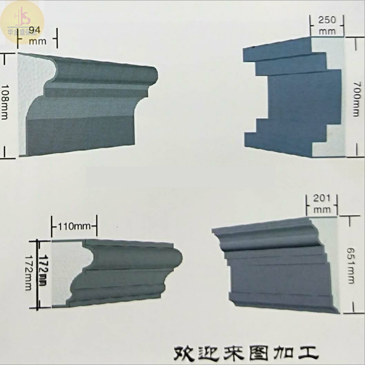 華金盛EPS主要產(chǎn)品有雕花、窗套線、腰線、門套線、檐口線、梁托、羅馬柱、門飾、裝飾構(gòu)件等產(chǎn)品,并且可以接受圖紙訂做。