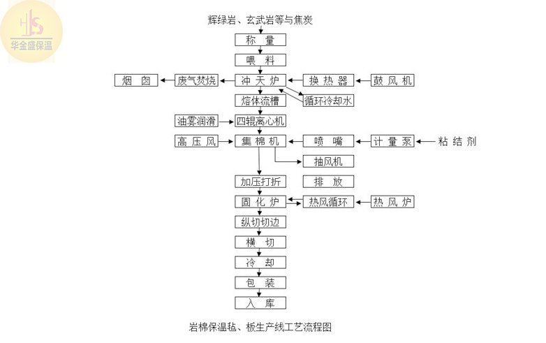 中建華金盛巖棉是以巖石如玄武巖、輝綠巖、白云石、鋁礬土等為主要原料,(石頭是不會燃燒的,這就是為什么我們的巖棉產(chǎn)品具備優(yōu)秀的耐火性,幫助建筑提高防火性能。)配以多種無機(jī)助劑,經(jīng)高溫融化,在原材料熔融狀態(tài)下,由高速離心設(shè)備離心成棉,由于采用了中心噴膠法,于是充分保證了膠的均勻分布,使棉與膠實現(xiàn)了結(jié)合。我們采用的是環(huán)保礦物粘接劑,把巖棉纖維粘在一起成為噴膠棉。噴膠棉經(jīng)擺錘擺動折疊布棉,棉層厚薄均勻且實現(xiàn)了多層垂直交疊的結(jié)構(gòu),后經(jīng)差速壓輥打褶使纖維折疊交叉亂向交錯壓在一起,從而使巖棉不出現(xiàn)小生產(chǎn)線制品棉質(zhì)分層的現(xiàn)象。打褶后的棉直接進(jìn)入固化爐。