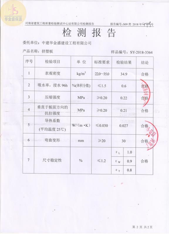 鄭州市防火巖棉板廠家-華金盛生產的尺寸為1200*600*50mm,容重為150kg/m3的防火巖棉板,委托國家建筑材料質量監督檢驗中心進行檢測,檢測項目包含:纖維平均直徑,渣球含量,尺寸穩定性,導熱系數,短期吸水量,長期吸水量,質量吸濕率,憎水率,垂直于表面的抗拉強度,壓縮強度,熱荷重收縮溫度,燃燒性能(A級),密度允許偏差,濕阻因子,酸度系數。經檢驗,送檢樣品的密度允許偏差和熱荷重收縮溫度符合標準GB/T118*5-2007中巖棉板的技術要求;其余檢驗項目(13項)符合標準標準GB/T25975-2010中強度等級為TR10的巖棉板的技術要求。具體數據如下: