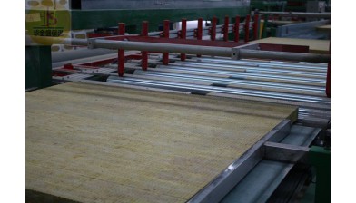 中建華金盛巖棉是以巖石如玄武巖、輝綠巖、白云石、鋁礬土等為主要原料,配以多種無機助劑,經(jīng)高溫融化,在原材料熔融狀態(tài)下,由高速離心設備離心成棉,由于采用了中心噴膠法,于是充分保證了膠的均勻分布,使棉與膠實現(xiàn)了結(jié)合。我們采用的是環(huán)保礦物粘接劑,把巖棉纖維粘在一起成為噴膠棉。噴膠棉經(jīng)擺錘擺動折疊布棉,棉層厚薄均勻且實現(xiàn)了多層垂直交疊的結(jié)構(gòu),后經(jīng)差速壓輥打褶使纖維折疊交叉亂向交錯壓在一起,從而使巖棉不出現(xiàn)小生產(chǎn)線制品棉質(zhì)分層的現(xiàn)象。打褶后的棉直接進入固化爐,經(jīng)高溫壓縮成型,后又經(jīng)切斷工序切斷或裁邊,然后進入自動包裝線,包裝入庫。